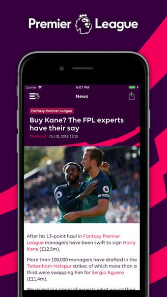 برنامج مجاني لأجهزة iPhone ، من قبل اتحاد كرة القدم Premier League Ltd.